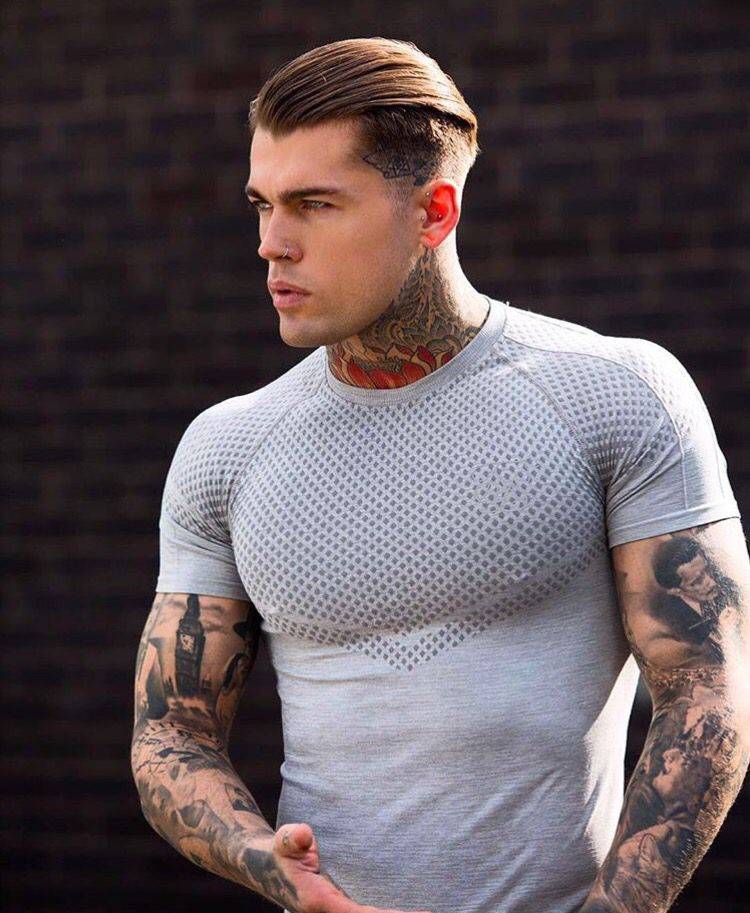 Стрижка «гитлерюгенд» подходит людям любых возрастов. Ее могут носить как юноши, так и взрослые мужчина от 30 лет и старше. Идеально смотрится под классическую одежду, но также вписывается под модные свободные стили. Добавить прическе брутальности помогут татуировки на теле.