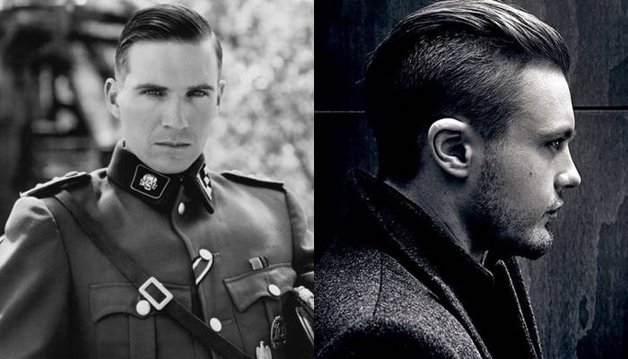 Главная особенность hitlerjugend – это максимально выбритая, практически «под ноль» затылочная часть, а также бока и виски, где волосы должны быть ровные с одинаковой длиной. А вот на макушке они должны начинаться от 5 см. Самая оптимальная длина – примерно 10 см. Между длинной и минимальной частью получается как бы промежуток, который выглядит как объемный «козырек». В результате получится образ, где лицо останется открытым и немного видоизменится из-за отсутствия шевелюры по бокам головы.