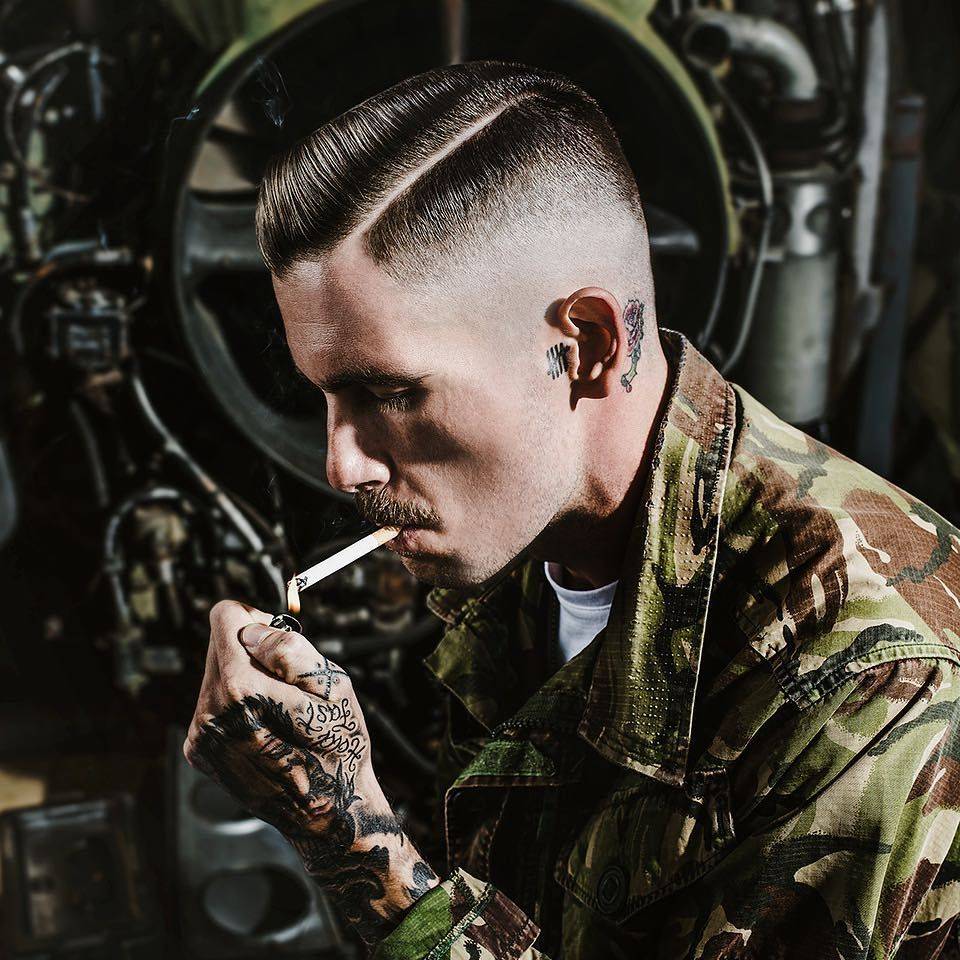 Стрижка под фрица – это практически наголо выбритые виски и затылок. Отсюда встает вопрос, а что ее отличает от бокса или полубокса? Стильный секрет скрывается в 10-сантиметровой длине волос на макушке. Итоговый результат поражает: полностью открытое лицо со слегка измененной формой, а образ запоминается надолго.