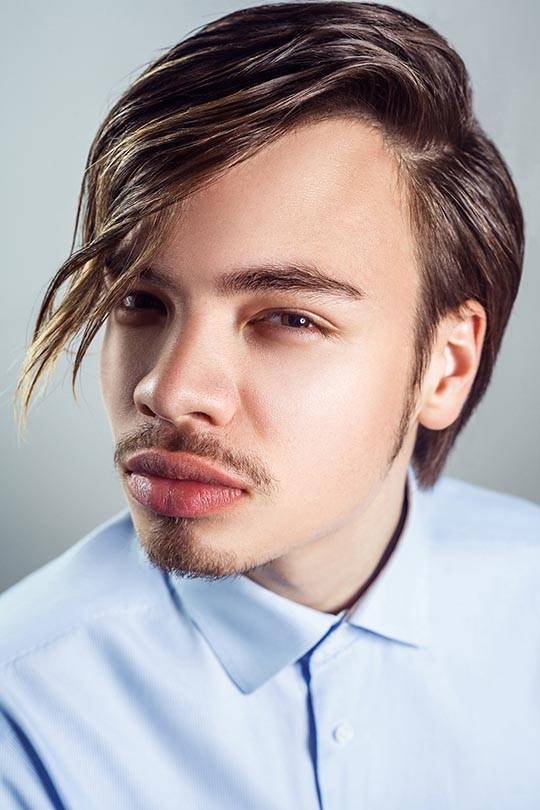 При вытянутом лице выгодна прямая челка, асимметричная – подходит всем мужчинам. Такой вариант выбирают подростки и молодые люди. Стиль гармонирует с повседневной и деловой одеждой.