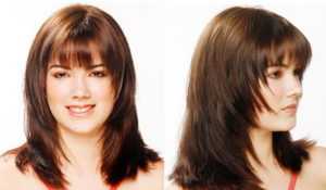 | Лицо прямоугольной формы | С объемной челкой скроет высокий лоб и сделает черты лица более правильными |