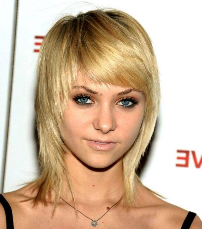 При круглой форме лица следует зрительно вытянуть лицо, сделать его более овальным. Этого можно добиться, сделав более пышной верхнюю часть причёски, при прямых прядях, которые будут «урезать» лицо. Очень аккуратно нужно быть с чёлкой. Не стоит закруглять её, и тем самым подчёркивать форму лица. Лучше обойтись и вовсе без чёлки, сделав ступенчатый каскад с теменной части головы к височной области.