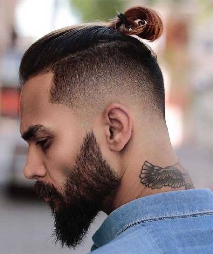Man bun максимально приближен к Top Knot. Стрижка будет спокойным классическим вариантом за счет того, что виски выбриты не полностью. В этом варианте вы должны отпустить бороду, чтобы не нарушать пропорции лица.