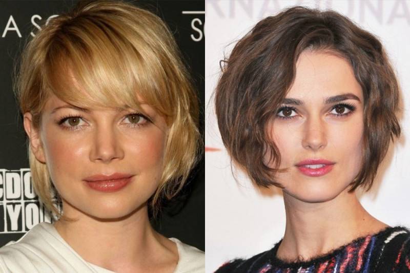 Удачные прически смягчают контуры лица, придают мягкость, женственность чертам, приближают форму к правильному овалу. Подойдут легкие, динамичные стрижки, позволяющие скрыть выступающие углы, подчеркивающие выразительные глаза. Визуально создают гармоничные линии вьющиеся, ниспадающие локоны, прямые пряди подчеркивают резкие контуры, выдающие скулы, подбородок.