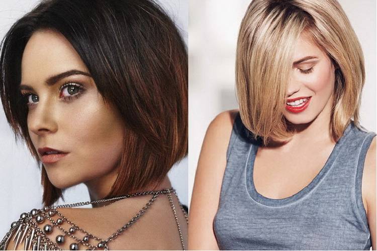 Для тонких прямых волос рекомендуется выбирать боб, плавный переход от пышной макушки к кончикам подчеркивает идеальную форму овала. Стрижку часто выбирают блондинки, удачная техника позволяет выделить блеск белокурых прядей. Прическа стала классической, предпочитают молодые девушки и зрелые женщины, желающие выглядеть стильно, безупречно. Челка-кулиса на одну сторону придает мягкость чертам, выделяет фактурные скулы.