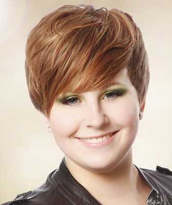 Стрижка пикси с челкой на бок для круглого лица, фото