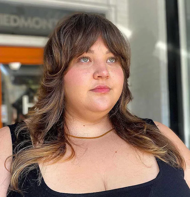 Длинные слои, которые начинаются на уровне подбородка или немного ниже, добавят текстуру и отвлекут внимание от полноты лица. Избегайте ровных срезов, которые заканчиваются на линии подбородка