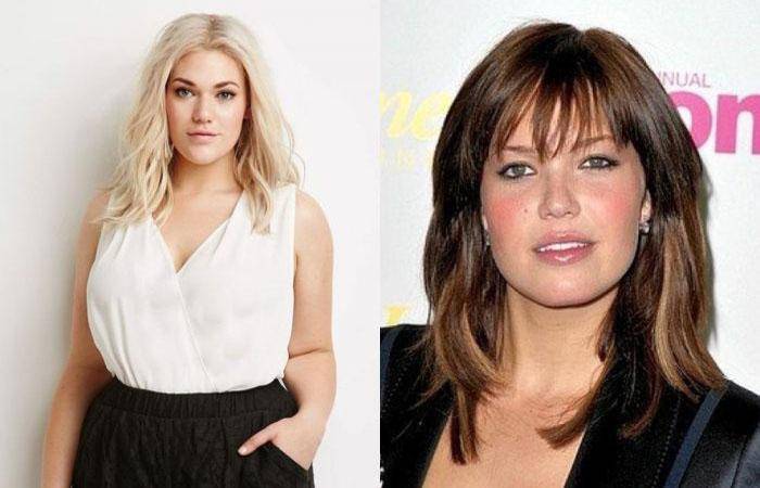 Практически всем полным дамам противопоказан густой прямой челки. Таким барышням следует обратить внимание на косые и рваные варианты. Если у женщины выдающиеся грудь и плечи, а также короткая шея, то челка ни в коем случае не должен прилегать ко лбу — лучше завить его большими волнами или сделать градуировку. Вместо челки можно также использовать передние длинные пряди, которые можно получить путем создания косого пробора.