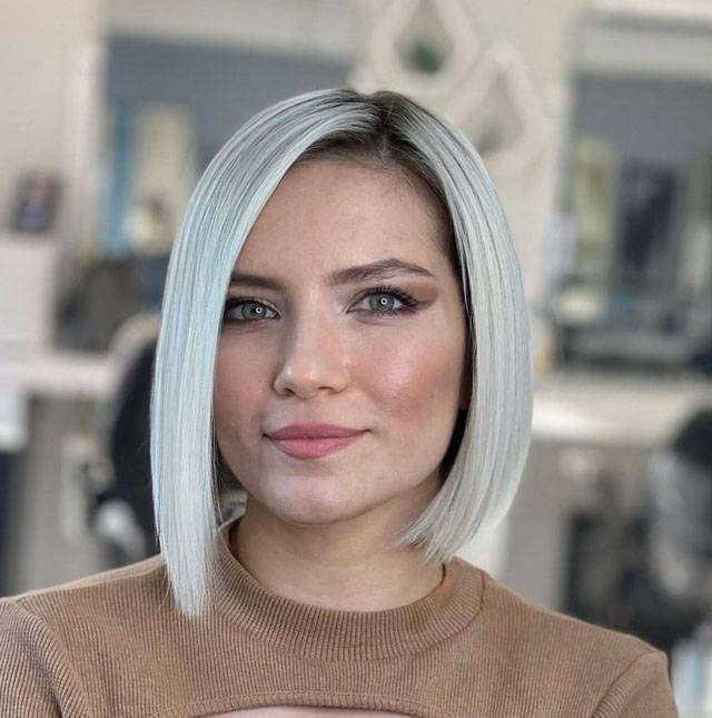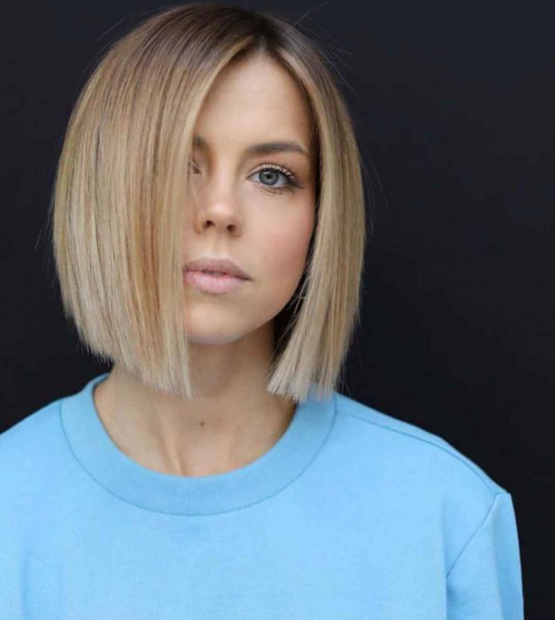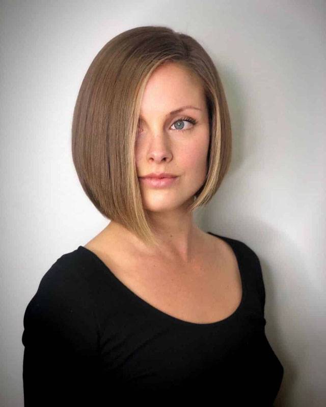 Асимметричный боб — стильный и дерзкий вариант для обладательниц прямых волос и круглого лица. Этот стиль имеет большую длину с одной стороны и более короткую с другой, что может помочь создать удлиненную угловатую форму.