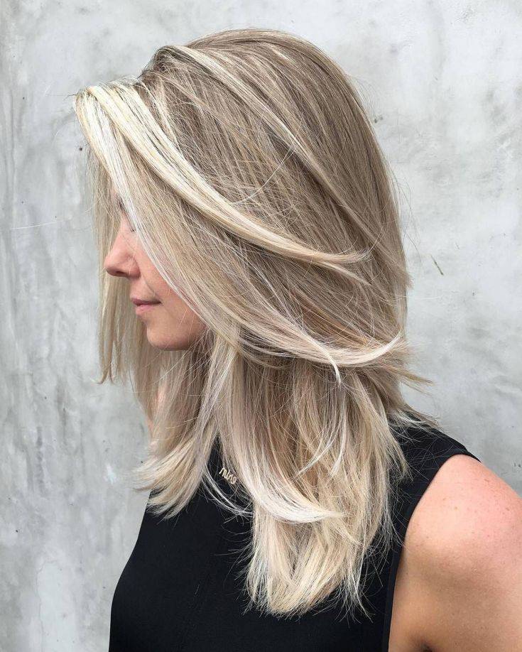 Хотите оригинальную прическу на длинные волосы? Это тебе. Это шикарная длинная многослойная прическа с бликами. Эти блики — естественный способ добавить цвета, не выглядя слишком очевидным. Многие предпочитают естественный вид оттенкам традиционного стиля. Слои дополнят вашу новую технику мелирования, и все ваши друзья будут завидовать вашим новым волосам.