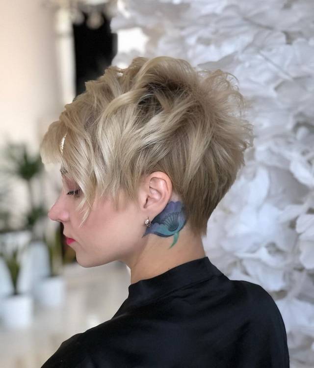 Обладательницы стрижки пикси смогут создать «бунтарскую растрепанность». Данный вид укладки выполняется с помощью моделирующего воска. Прядкам нужно дать различное направление. Такая укладка отлично смотрится с челкой. В этом случае ее можно оставить прямой или же наоборот задать ей интересное направление.
