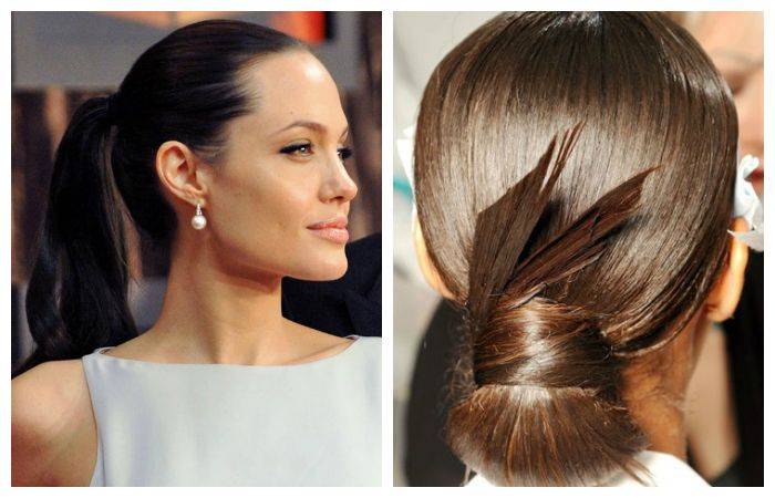 Как сделать прическу самостоятельно? Все очень просто. Уложить волосы можно в гладкий пучок или же сделать аккуратный хвост. Основное правило: пряди должны быть идеально гладкими и должен быть создан эффект блеска.