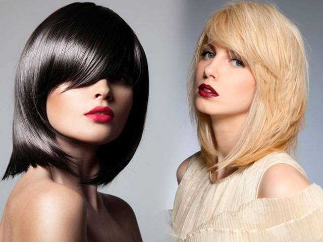 Среди вариантов замысловатое каре с филировкой и гладкое — зачесанное назад, а также асимметричный и идеально ровный боб, что контрастируют между собой, но для многих девушек будут идеальными.
