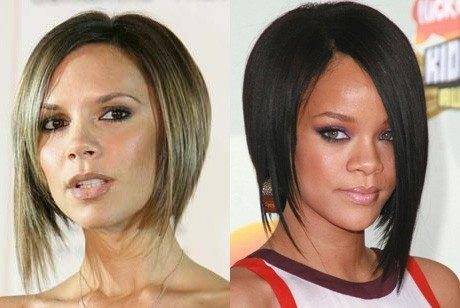 Эти два «кандидата» с удлинением передней части шевелюры смело можно назвать одними из популярнейших причесок. У таких вариаций максимальный размер прядей находится у лица, а в задней части пряди короткие, причем размер этих прядок регулируют в зависимости от состриженной длины передних прядок. Шевелюра в задней части может прикрывать шею. Есть еще один такой вариант с удлинением- это каре с удлинением. В затылочной части шевелюра очень короткая и выстрижена в виде треугольника. Многие девушки предпочитают эти стрижки на среднюю длину в рваном варианте, то есть величина прядей достаточно хаотична. Примером любительниц такого образа можно назвать Викторию Бекхэм.