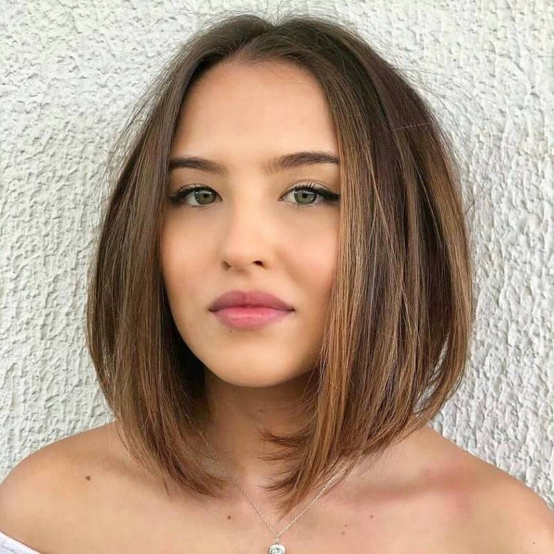 Девушкам с треугольным типом лица подойдет средний боб без челки – он позволит визуально уменьшить подбородок. Круглолицым подойдет средний боб с удлиненными прядями по бокам, которые подчеркнут скулы.