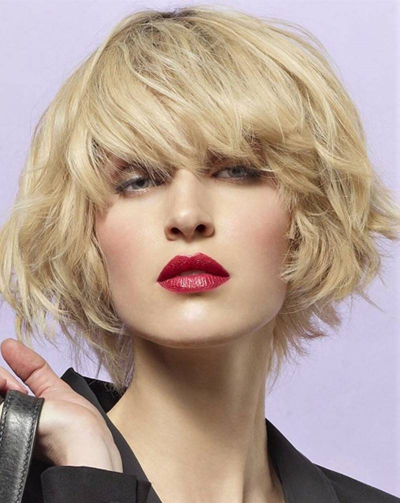 В этой прическе немаловажно уделить внимание челке, она должна быть не в едином стиле, а иметь различную длину, например ее, выполняют наискосок или на уровне бровей делают немного неровной