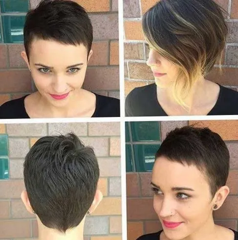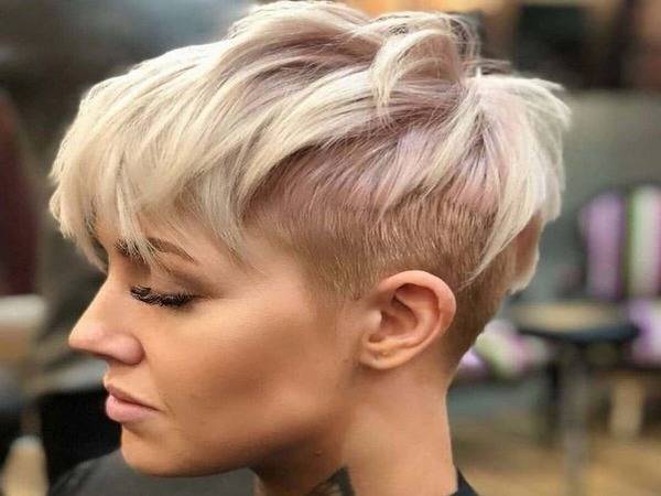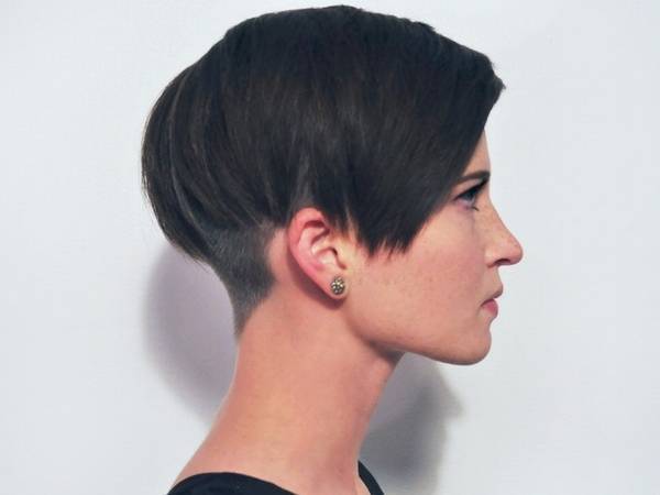 В этой прическе основная длина волос оставляется на макушке, а нижние пряди стригутся как можно короче. Однако можно сделать и так, чтобы волосы слегка касались затылка. Это делает его более женственным. Кроме того, такая мальчишеская стрижка визуально удлиняет шею