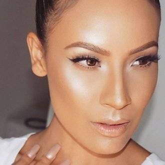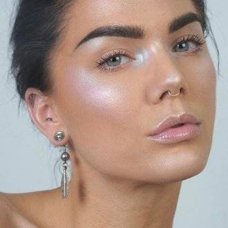 Пудровый хайлайтер с аккуратным мерцанием – важная часть праздничного мейкапа. Он наносится на скулы, кончик носа, лоб и участок над верхней губой. Жидкий хайлайтер применяют до фиксации макияжа сразу после наложения тональной основы. Пудровый – после нанесения финишной рассыпчатой пудры.