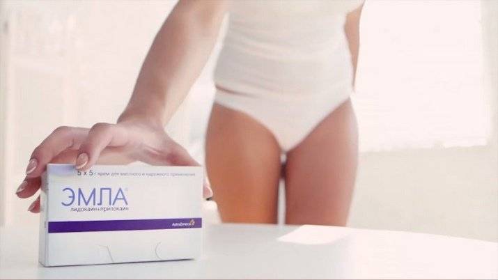 - Эмла. Это еще одно средство наружного применения с обезболивающим эффектом. Его наносят на зону бикини на полтора часа и покрывают пленкой для эффективного впитывания.