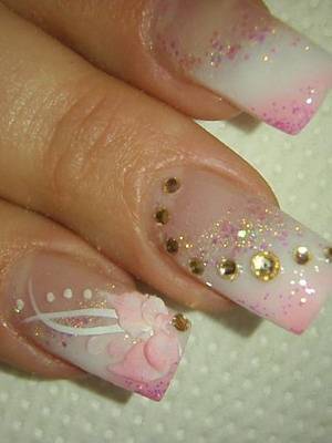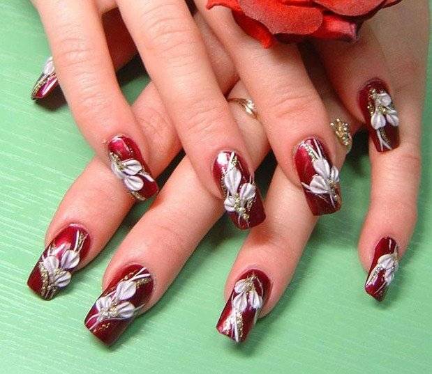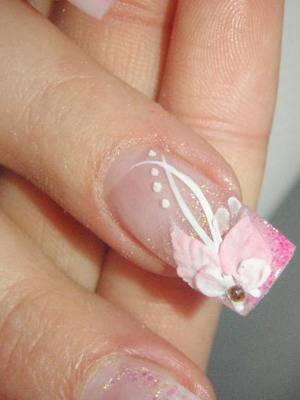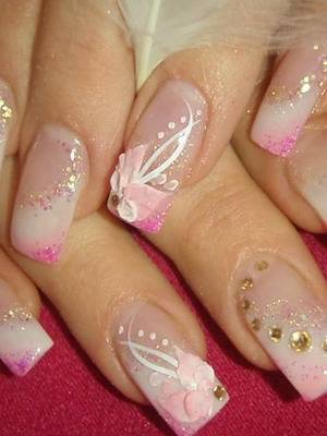 На искусственных ногтях можно также создать целую объемную картину. Дизайнерский шедевр в виде лепки и роспись внутренней части ногтей считается вершиной мастерства при создании маникюра. Во время моделирования ногтей можно использовать дополнительные материалы: блестки, стразы, нити и другое. Так называемый «аквариумный» свадебный дизайн ногтей придаст узору объемность и «глубину». Такой вид маникюра также следует оформлять в нежной цветовой гамме.