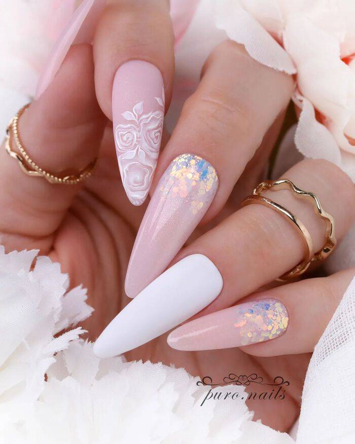 Идеи свадебного маникюра для нарощенных ноготков