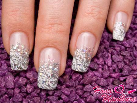 Наиболее часто невесты заказывают себе именно ногти «френч». Это отличное и ненавязчивое решение для свадебного маникюра, подчеркивающее нежность и изящность девушки. «Френч» предусматривает окрашивание отросшей части ногтя в светлый тон. Причем это не обязательно должен быть исключительно белый цвет. Сегодня часто свадебный дизайн ногтей в стиле «френч» выполняют в бело-перламутровых, розово-перламутровых, жемчужных тонах и в цвете слоновой кости. Лепка или художественная роспись безымянных пальцев сделает такой маникюр невероятно красивым и необычным. Не лишним будет показать мастеру, который будет заниматься дизайном ваших ногтей, свой свадебный наряд. Это позволит выполнить свадебный дизайн ногтей в контексте всего образа невесты.