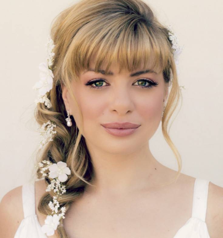 Свадебные прически с челкой – переплетения и косы