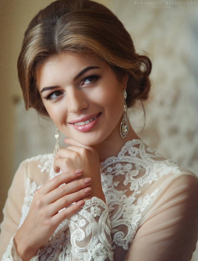 Прическа невесты для этого типа лица с массивными скулами и выдающейся челюстью имеет свои особенности: