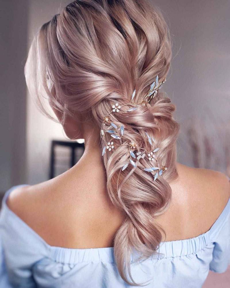 В качестве дополнения можно использовать диадемы и венки, бусы и цепочки, оплетающие прическу, отдельные бутоны и гребни.