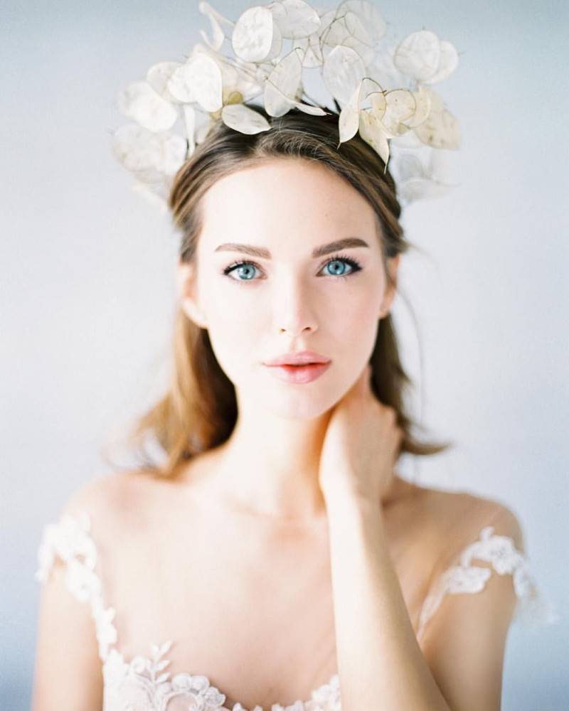 Подобные прически смогут превратить любую невесту в настоящую королеву. Аксессуар сам по себе красив и величествен. Даже самая скромная прическа будет выглядеть очень стильно. Корона сочетается с объемными укладками, с кудрями или с легкими волнами. Также она может украсить косы или классическую ракушку.