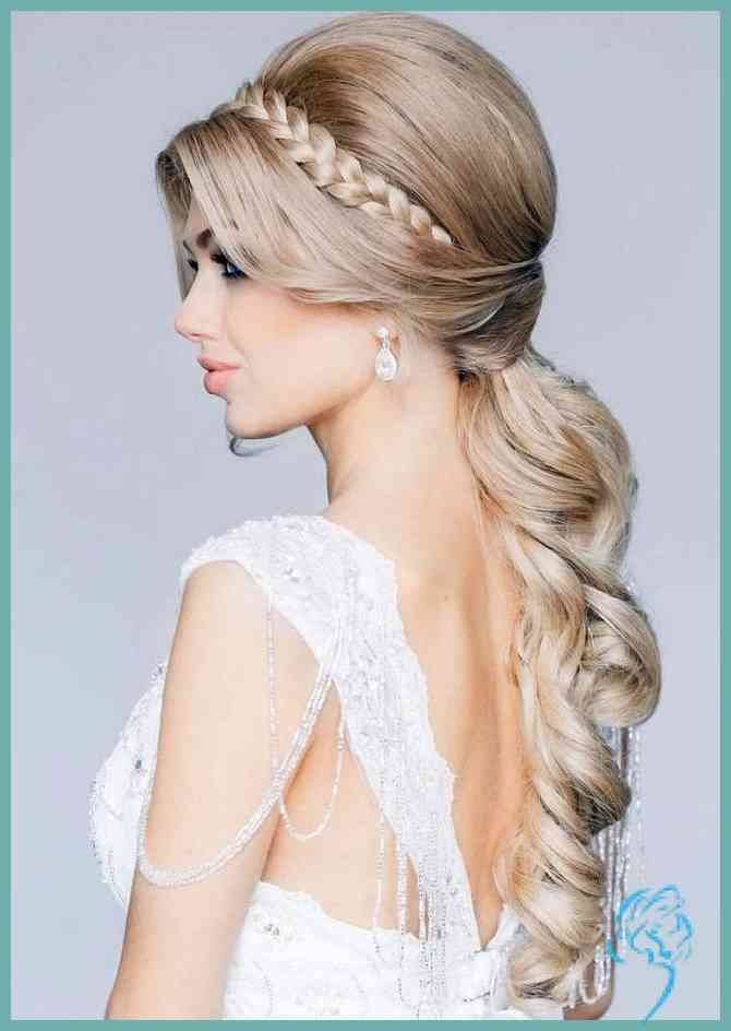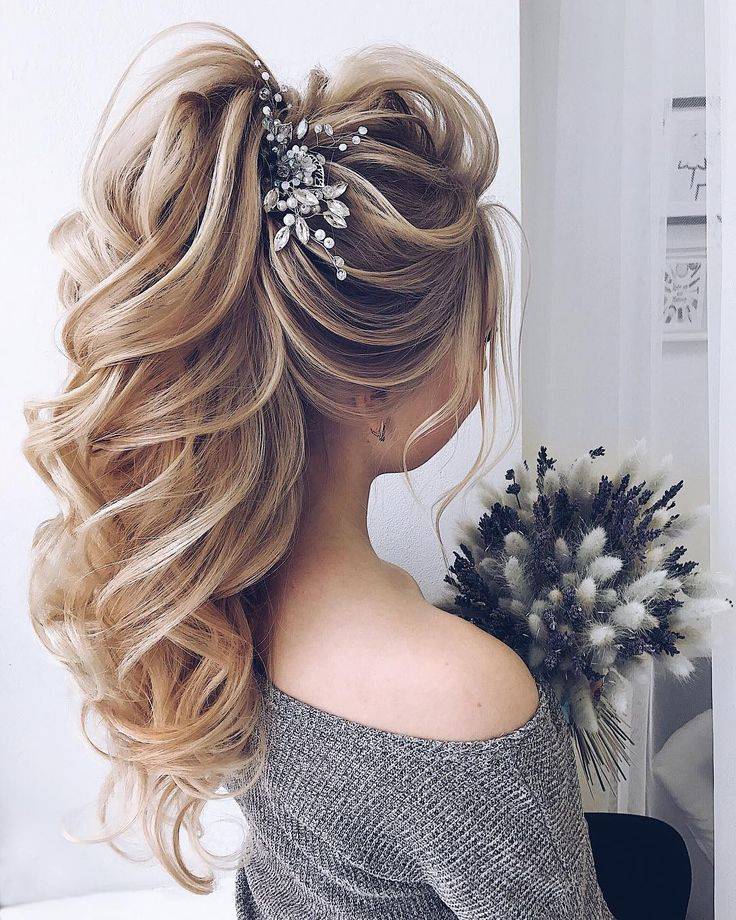 - Конский хвост подчеркнет элегантный вкус невесты. Собранные волосы откроют красивую линию затылка и сделают выгодный акцент на линии скул.