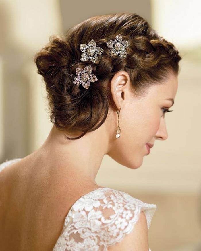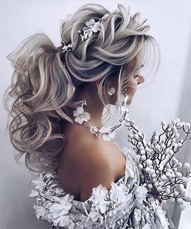 Для украшения стоит использовать объемные, крупные вещицы в виде роскошных цветочных бутонов, пышных бантов, роскошных заколок и корон.