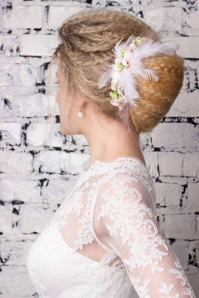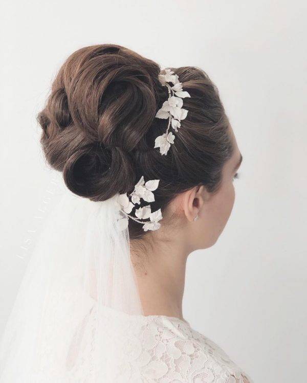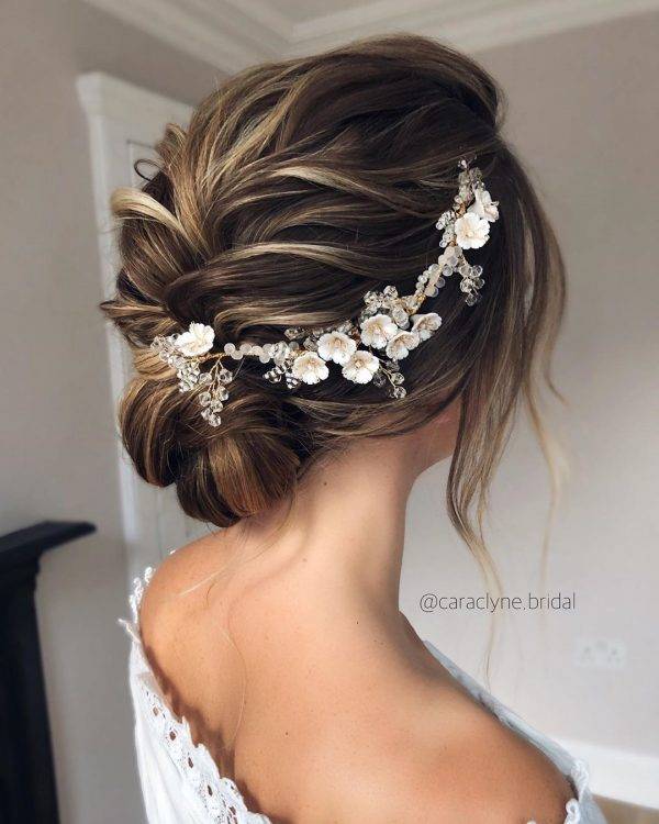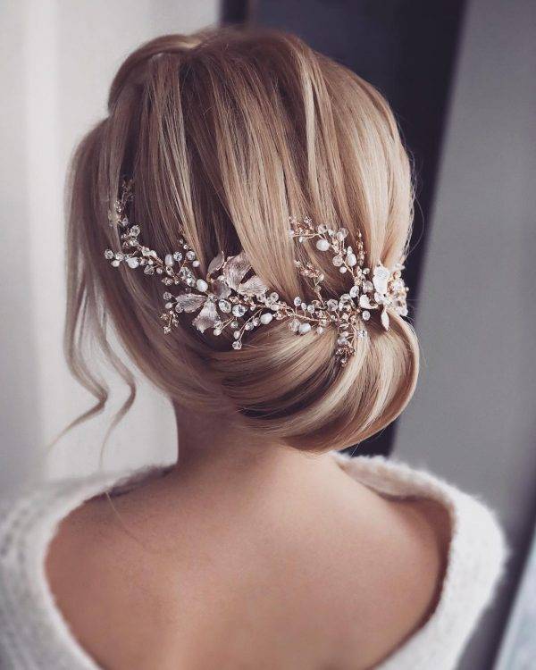 В качестве дополнения можно использовать диадемы и венки, бусы и цепочки, оплетающие прическу, отдельные бутоны и гребни.