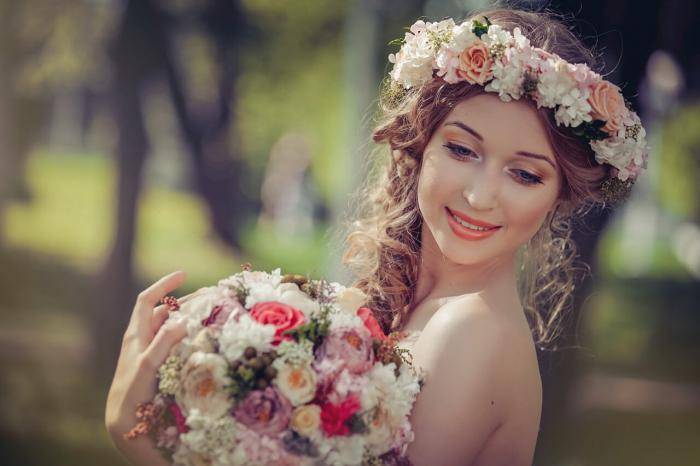 Сегодня большой интерес вызывает фольклорный стиль. Он не подразумевает наличие фаты. Здесь используются различные ленты, цветочные венки. Красиво смотрятся косы с различным плетением. Если свадьба проходит в стиле ретро, то и прическа должна быть соответствующей. Актуальны волны, локоны. Не менее популярен пучок, который может иметь любую форму и высоту.