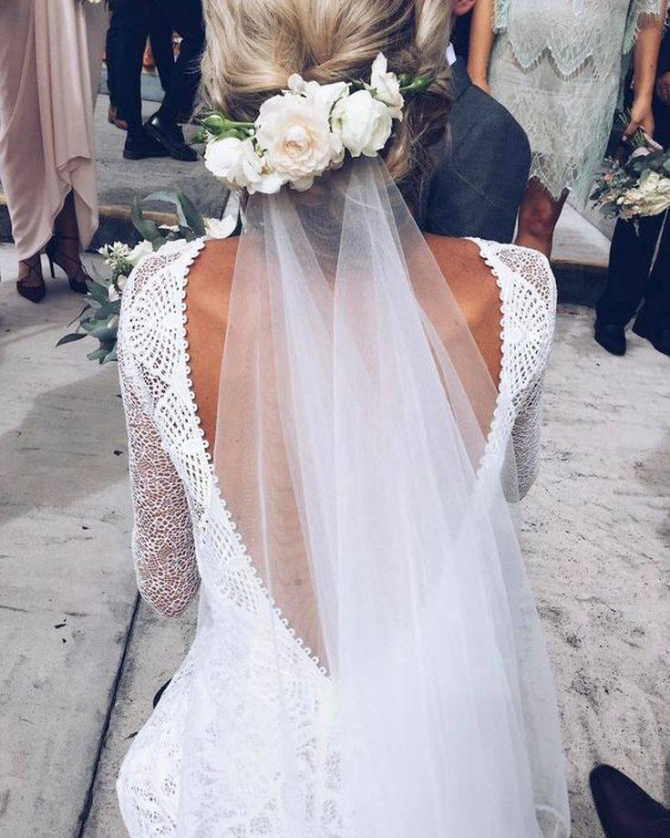 - Можно уложить волосы высоко на макушке, получится легкая воздушная причёска, на которой будет удобно закрепить фату.