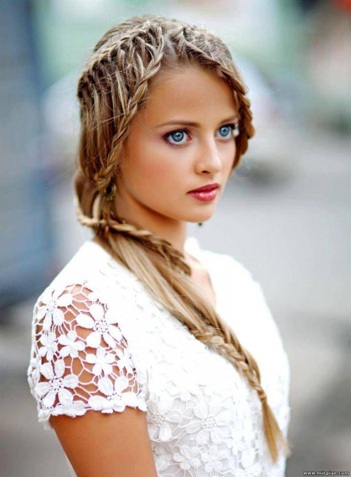 - выигрышно смотрится и греческий стиль – затейливые переплетения кос или завитые локоны, уложенные на одной стороне;