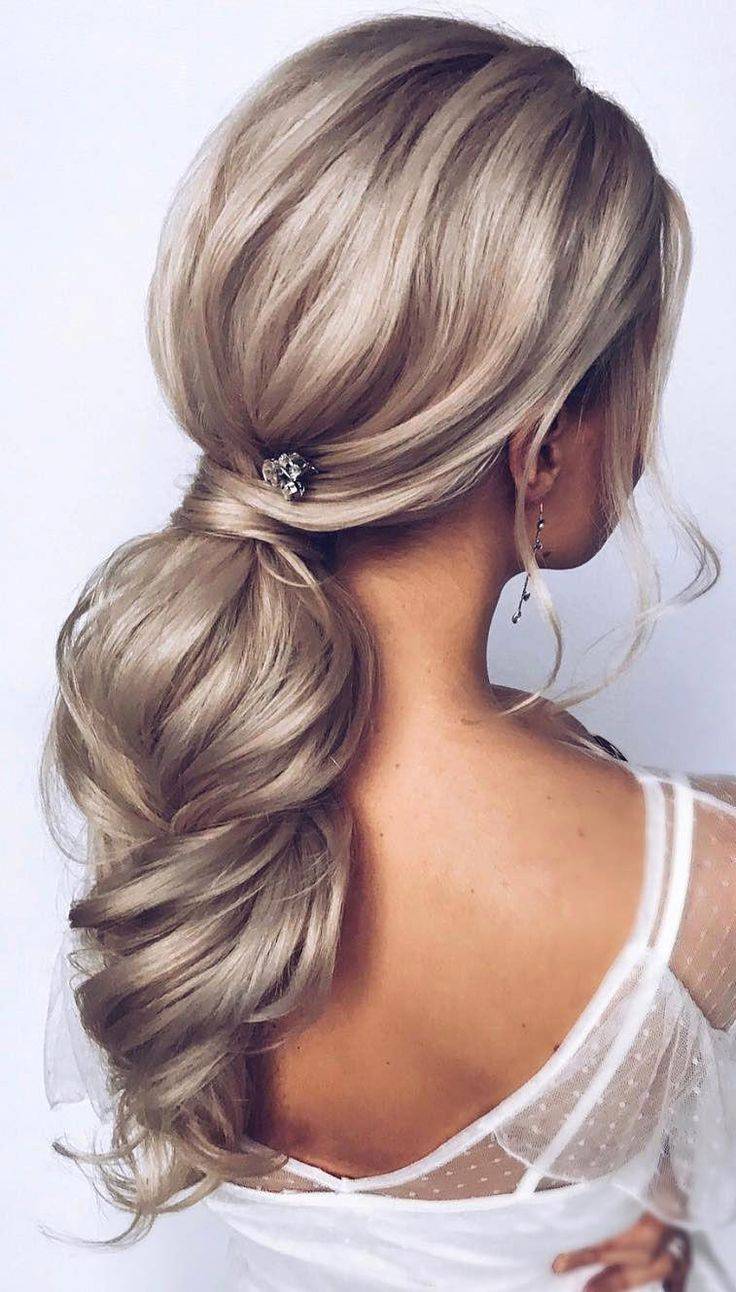 Среди свадебных причесок 2024-2025 на основе хвоста явным фаворитом становится низкий хвост с начесом, потесняя пышный вариант высокого хвоста из локонов на второй план. Аккуратный низкий хвост более универсальный и выглядит очень женственно и элегантно.