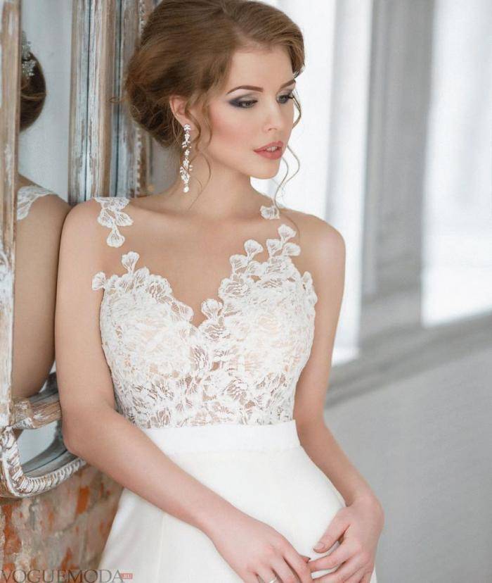 Если у новобрачной овальное лицо, ей подойдут практически любые варианты – это универсальный тип. Исключение составляют высокие прически-гребни в виде ирокеза или бабетты