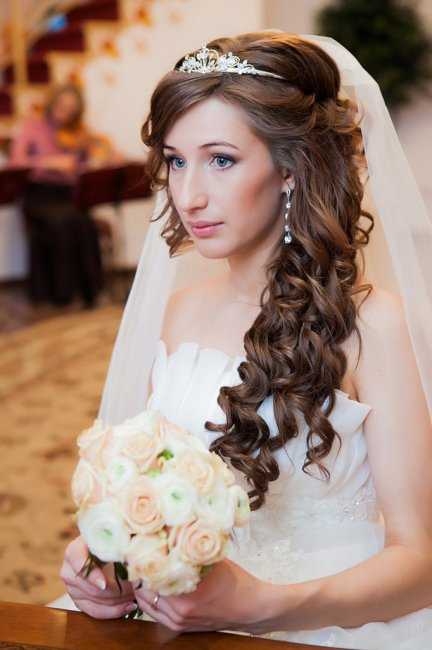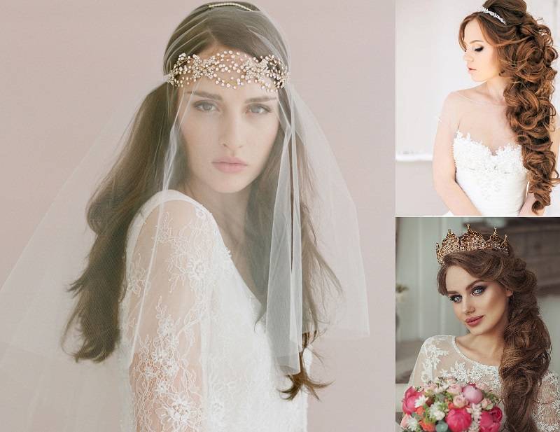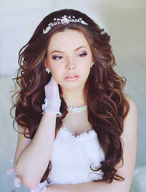 Самые актуальные свадебные прически с диадемой на длинные волосы: