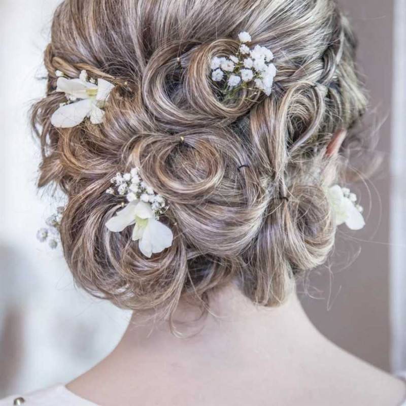 Завивать локоны можно в разных направлениях – горизонтальном, диагональном или вертикальном. Их ни в коем случае нельзя расчесывать. Кудри разбираются на пряди руками, а потом смешиваются с остальными волосами. Чтобы дольше сохранить свадебную прическу, используйте небольшое количество лака для волос.