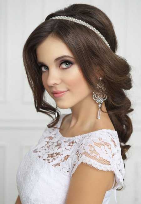 - Легкий начёс от корней, прикрытый локонами, отведенными от лобной или височной зоны. Диадему закрепляют у основания начёса.
