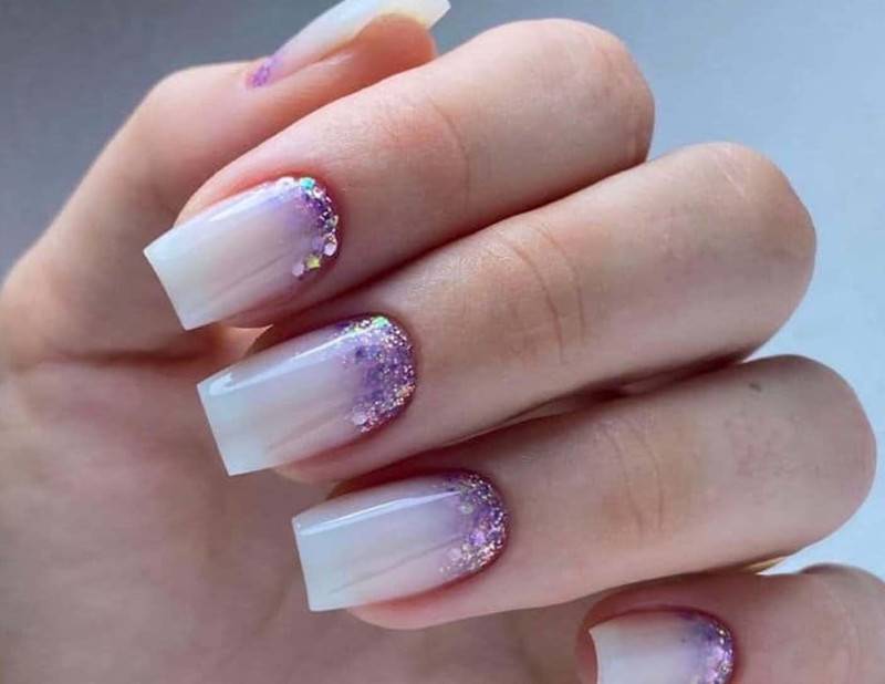 Сиреневый в своем исполнении на короткую длину схож с розовыми тонами. Задача та же, выполнение с различными дизайнами то же, но отличие лишь в том, что это будет не надоедливый розовый, а редкий сиреневый оттенок.