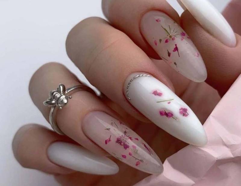 Искусство нейл-арта созвучно с модными трендами. Один из них — флористические принты, цветочные аппликации. В последнее время популярны кружевные ткани, ажурные вставки на одежде. С этим трендом перекликаются кружевные узоры на френче.