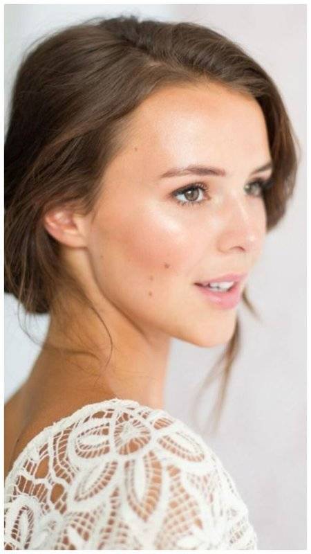 Свадебный макияж для зеленых глаз и светлых или темных волос может быть максимально простым и даже практически незаметным, если отдать предпочтение тренду «нюд». Данная техника предполагает нанесение мейк-апа таким образом, чтобы окружающим даже не было понятно есть он на лице или нет. Это довольно сложная и очень нежная техника.