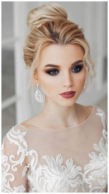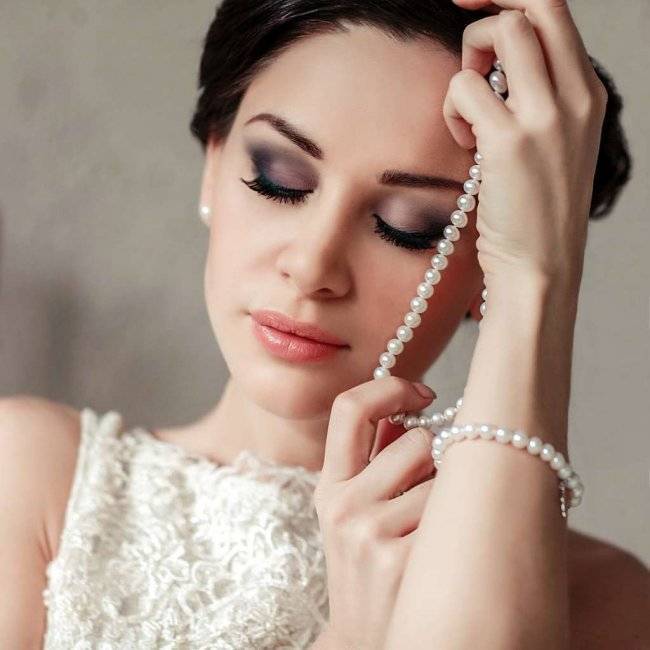 Хорошо сделанный макияж подчеркнёт глубину и выразительность глаз невесты, а также их красивый цвет. Всем голубоглазым девушкам стоит избегать голубых теней, особенно в сочетании с чёрной подводкой. А вот нежно-розовые, серебристые, фиолетовые, лазурные, золотистые оттенки подойдут каждой голубоглазой невесте