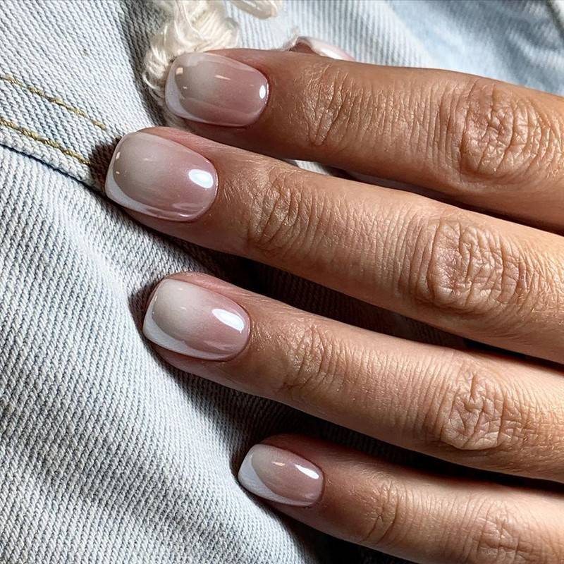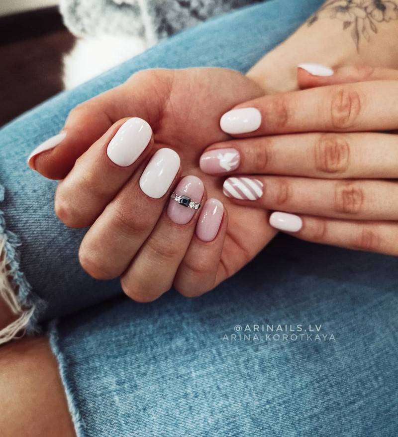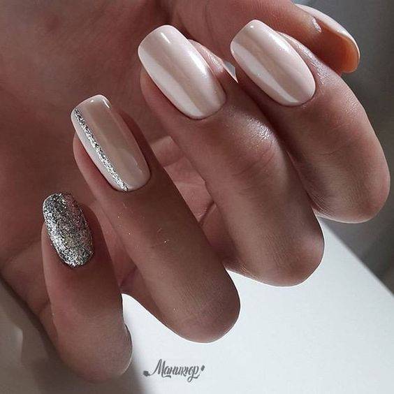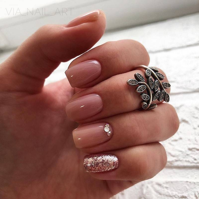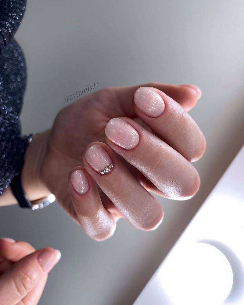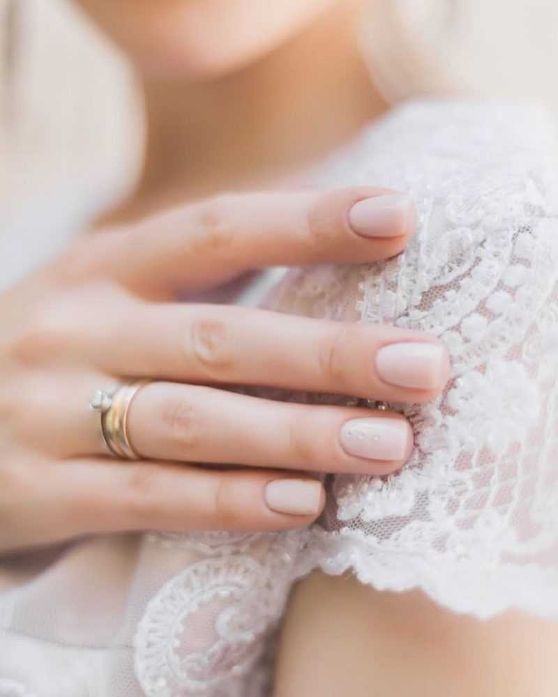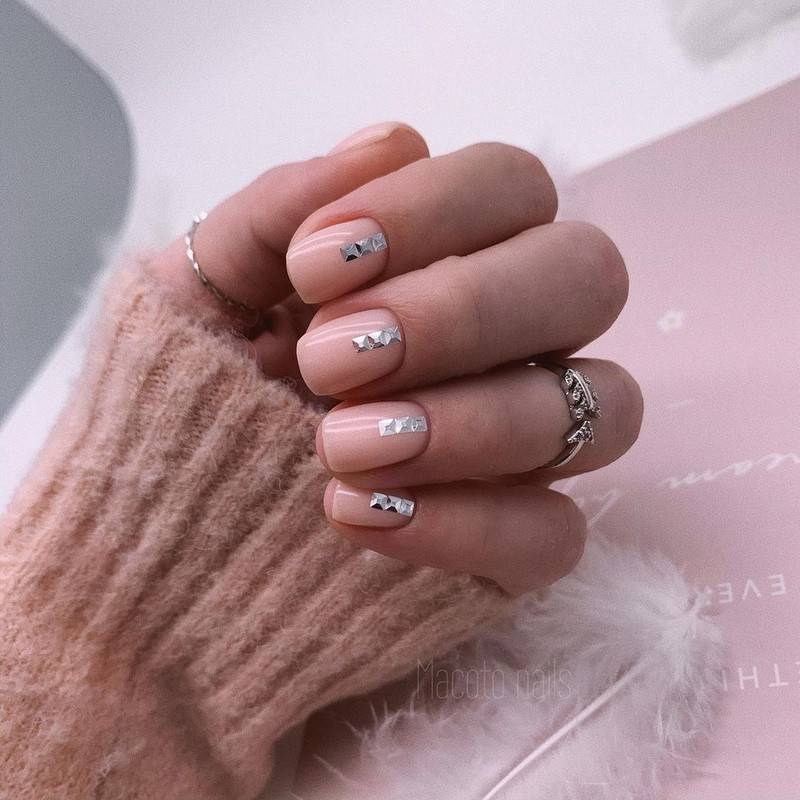 Супер короткие ноготочки со свадебным маникюром с нюдовым модным дизайном