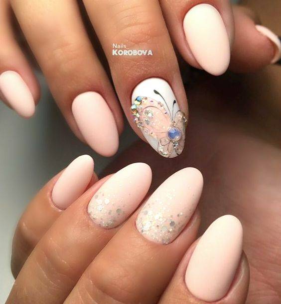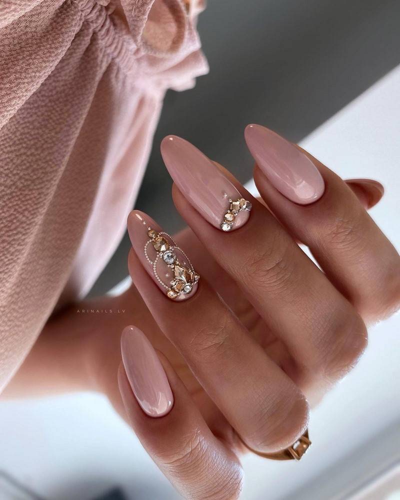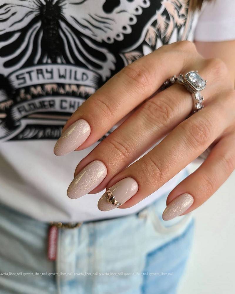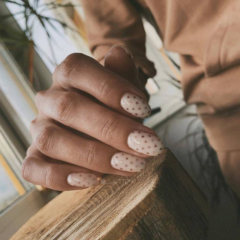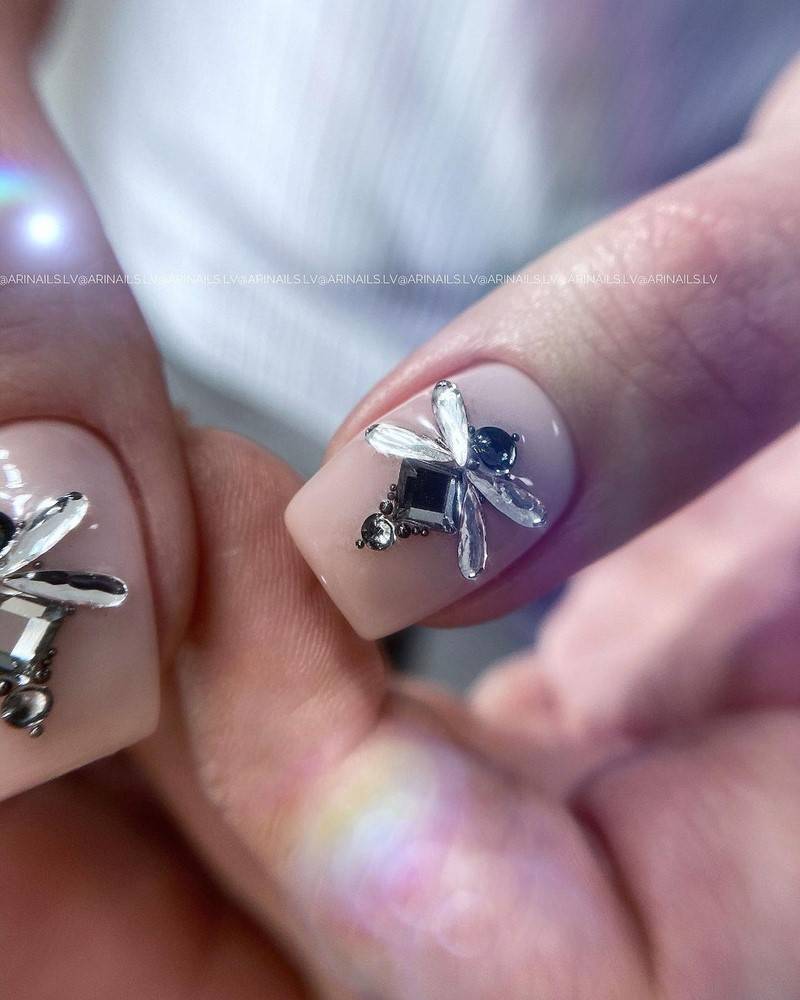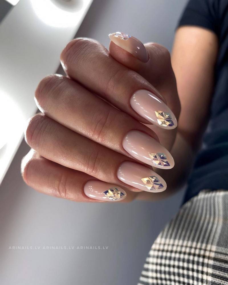 Супер короткие ноготочки со свадебным маникюром с нюдовым модным дизайном