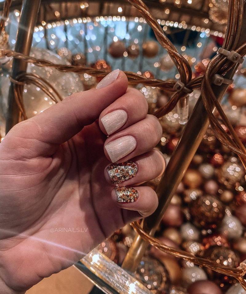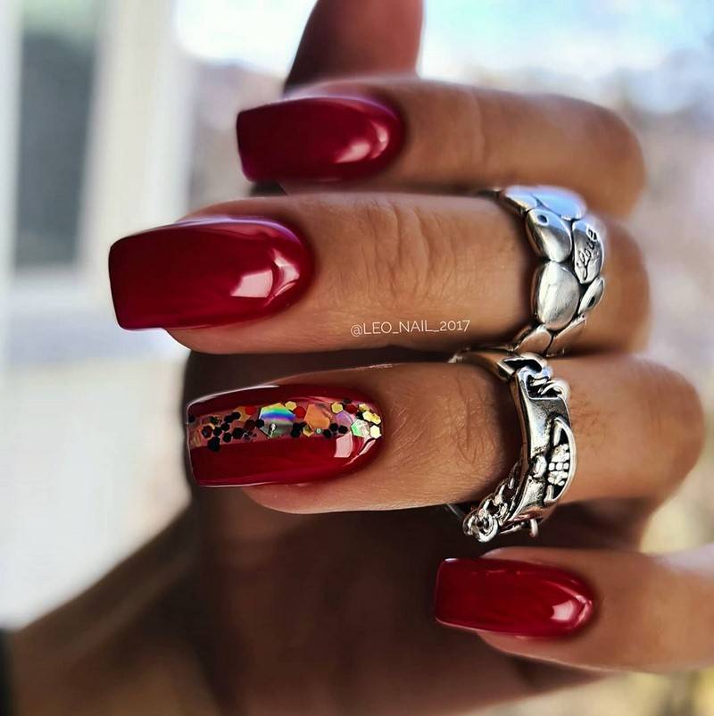Блестки — самый популярный вид декора ногтей уже не один сезон подряд. Что касается трендов осеннего маникюра с блестками 2020 года, то отдавайте предпочтение серебристым и золотым блесткам, выбирайте теплые или холодные блестки исходя из основного покрытия лака. Цветные блестки тоже хорошо смотрятся в маникюре на короткие и длинные ногти, они могут быть в тон лаку или быть на контрасте.