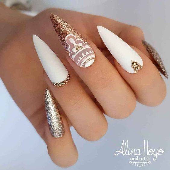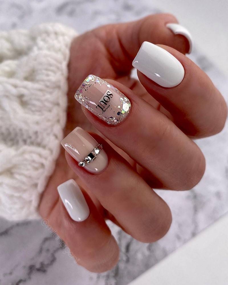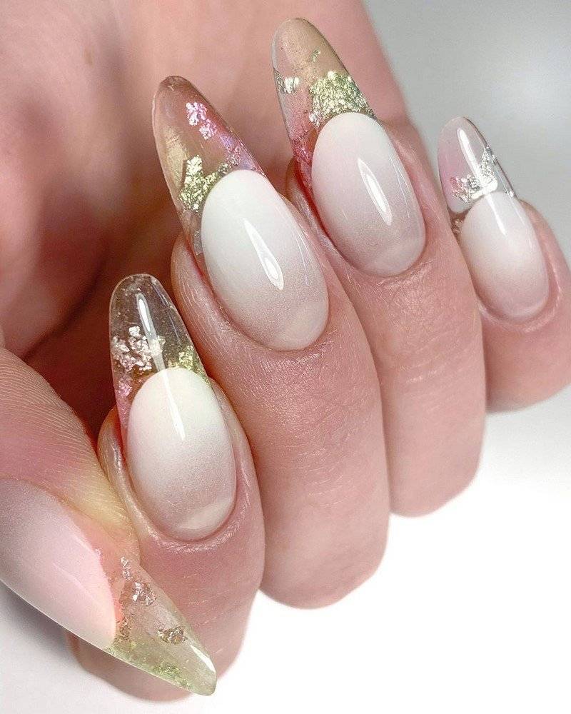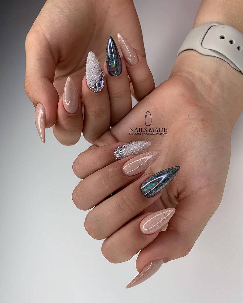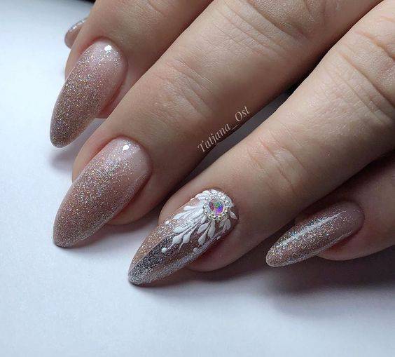 «Глиттер», фольга, камушки и стразы – всё это сверкающее разнообразие с большим успехом помещают мастера нейл-арта на пальчики невест, и в 2020 это многообразие будет вновь и вновь радовать и удивлять своей необычностью.