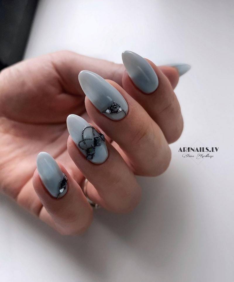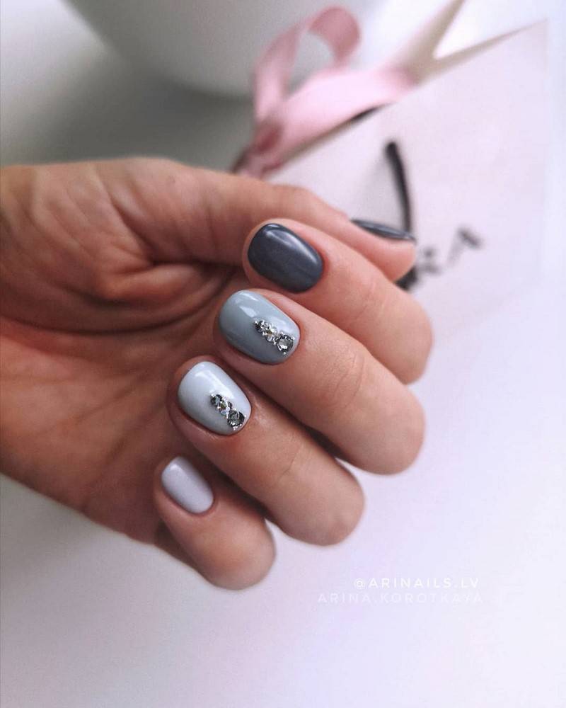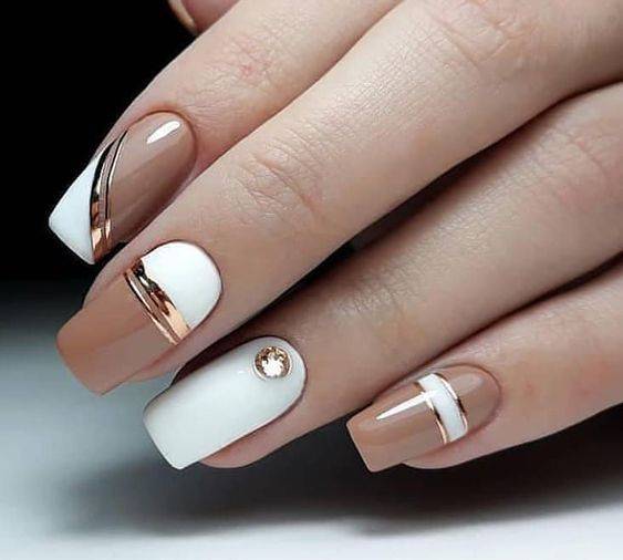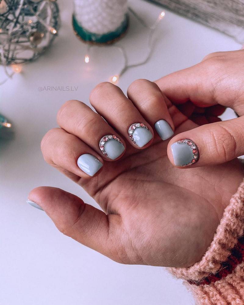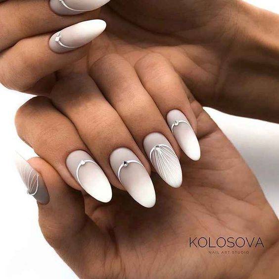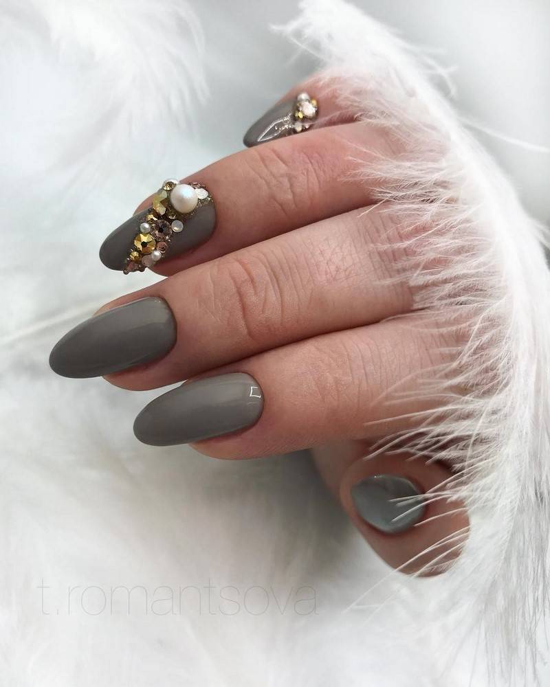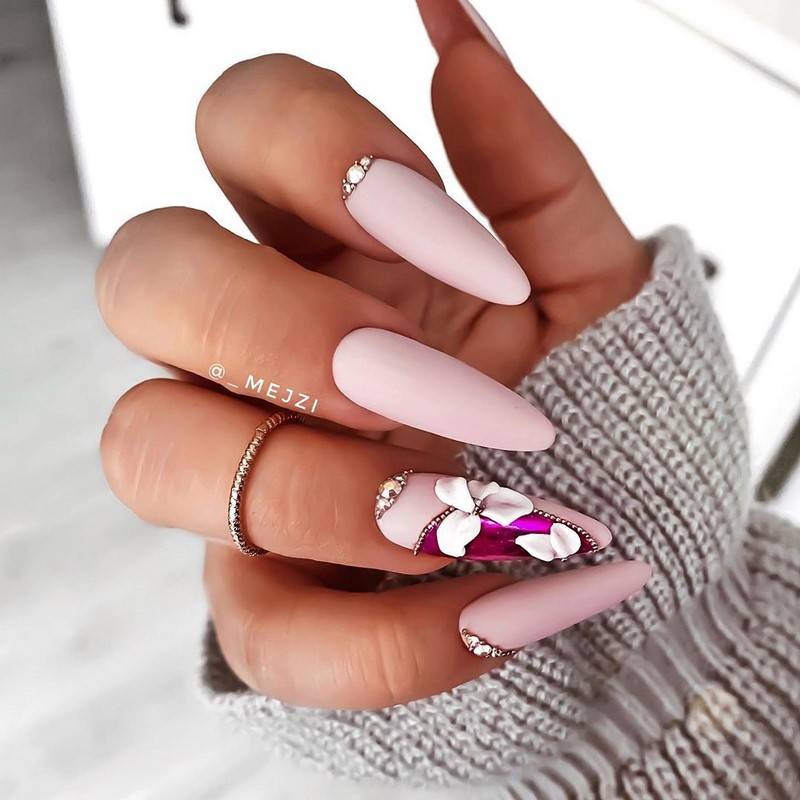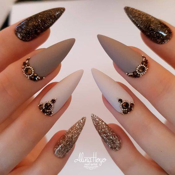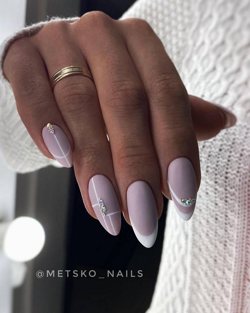 Маникюр с камнями просто шикарно смотрится в матовом исполнении, такой дизайн не оставит равнодушным никого. В осеннем маникюре сезона 2020 камни и стразы наносятся на ногтевую пластину в виде красивого узора на один-два пальца, или в виде мелких камушек на всю ногтевую пластину, тоже в виде акцента. Идеи для вдохновения, смотрите на фото ниже: